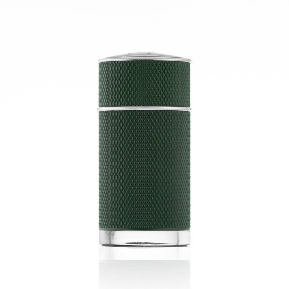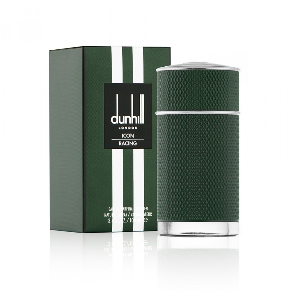 - عطر دنهل ايكون ريسنغ هو عطر خشبي للرجال في زجاجة عطر اسطوانية باللون الاخضر من وحي أجواء سباقات السيارات.