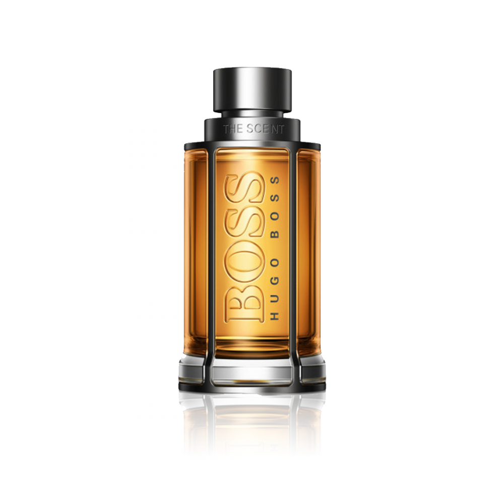 - عطر HUGO BOSS THE SCENT عطر رجالي بإسطوانة باللون الذهبي المصفر و غطاء باللون الفضي البلاتينيوم يعكس القوة و الثبات