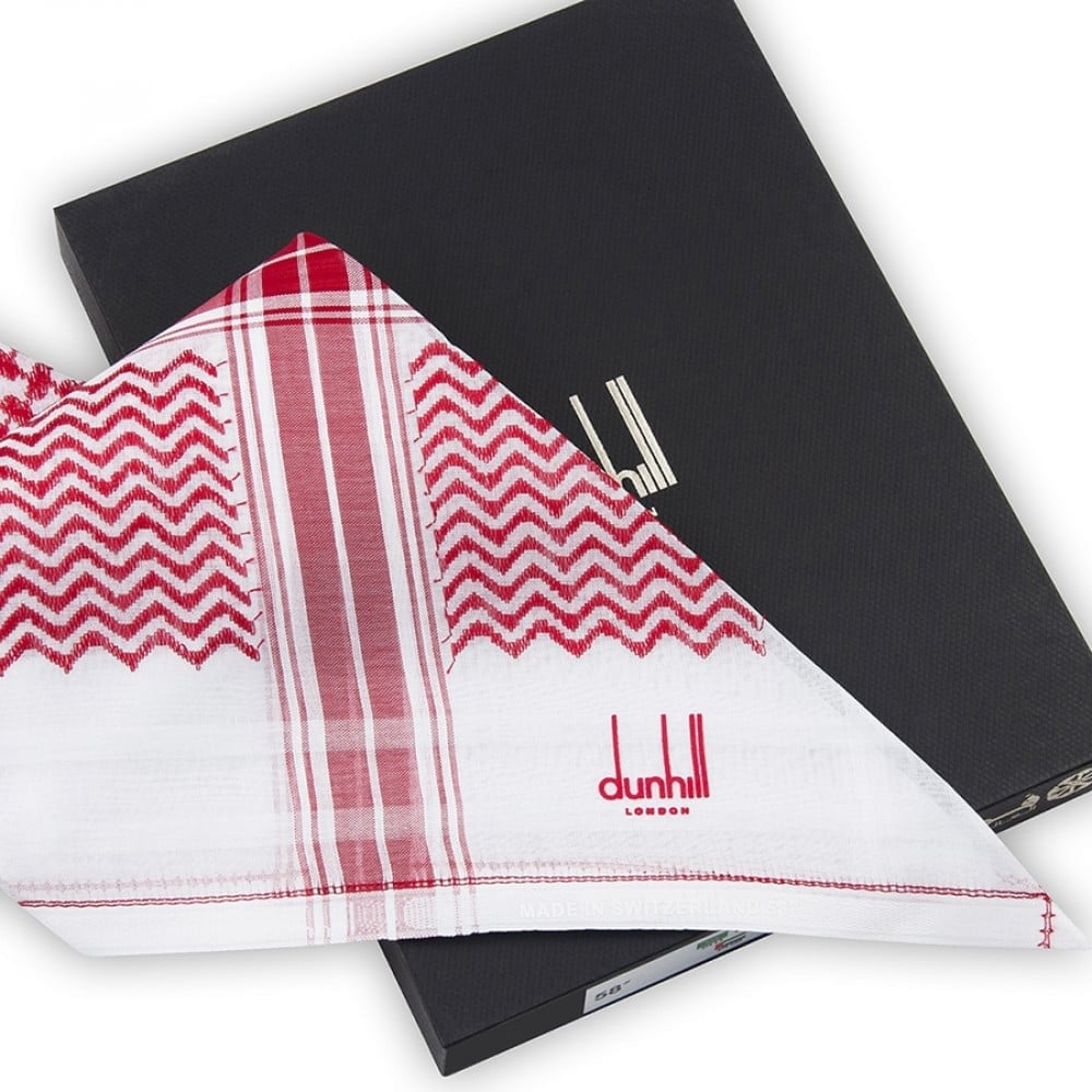- شماغ دنهل باللون الاحمر ذات النقشة الفريدة .